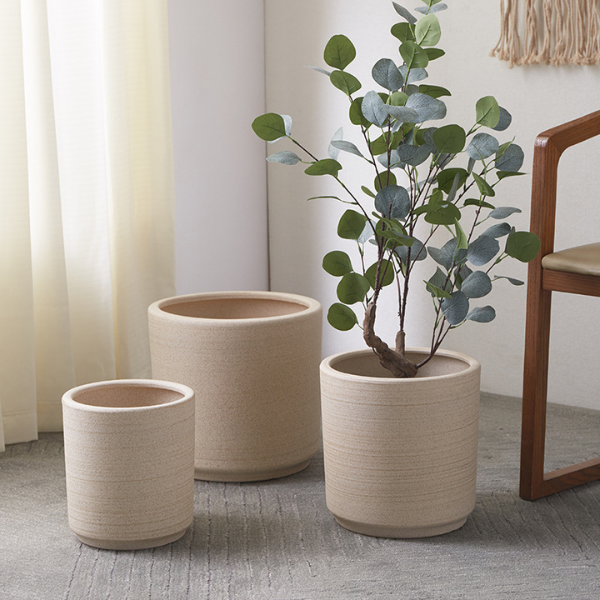 Simple Scandinavian Round Mouth Ceramic Flower Pot Large Floor Green Plant Ornament Home Office Breathable Practical Flower Pot Decoration